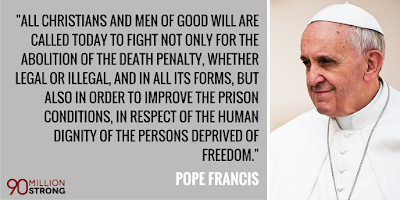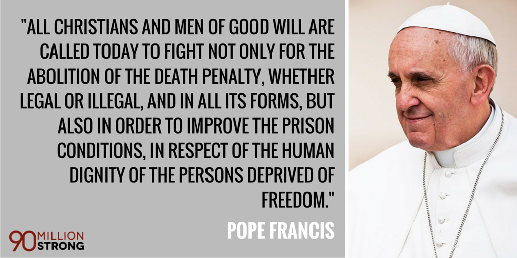 “I appeal to the conscience of the rulers, so that we achieve an international consensus for the abolition of the death penalty,” Francis told the thousands gathered in St. Peter’s Square. “And I propose to those among them who are Catholics to make a courageous and exemplary gesture that no sentence is executed in this Holy Year of Mercy.”