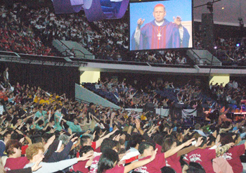 A stadium Mass that looks more like a rock festival... all reverence was abandoned
