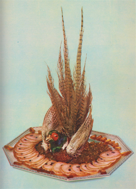 Roasted pheasant, dressed in its full plumage