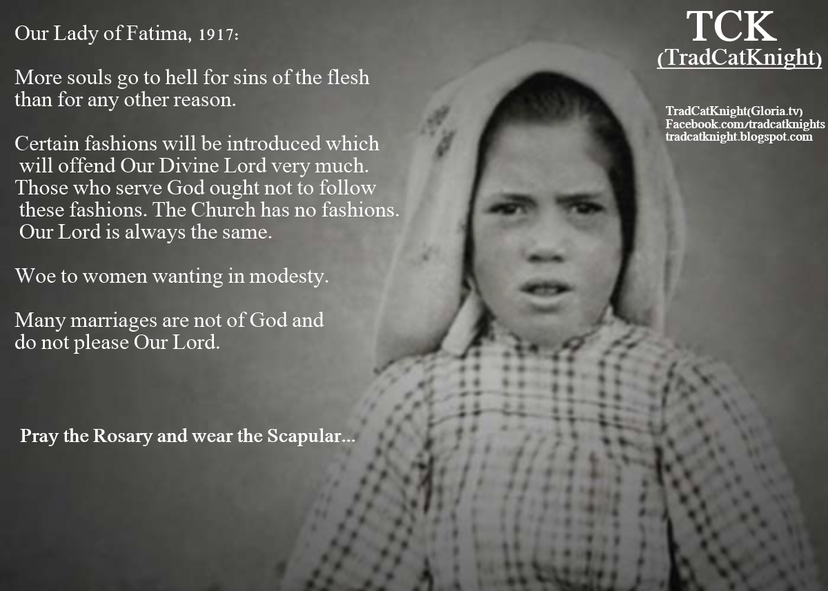 Our Lady of Fatima, The sins which cause most souls to go to Hell are the sins of the flesh"