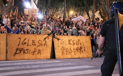 Topless FEMEN Activist Tries to Kidnap Jesus Figure From Nativity Scene
