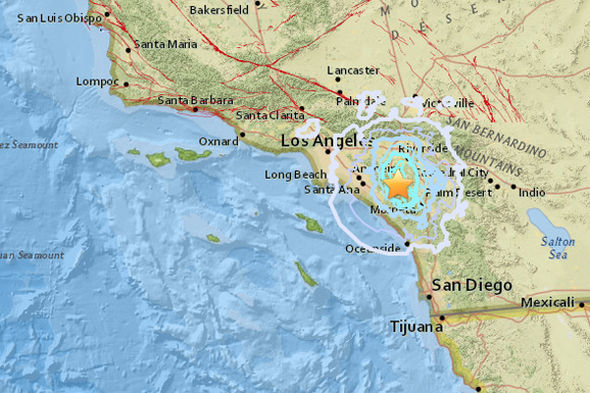 California has been rocked by an earthquake measure 5.8 magnitudes, with a 5.0 shock following just minutes later in a day of seismic activity along the Ring of Fire which has put Californians on alert for the Big One. The most recent quake happened at 5.24pm GMT, or 9.24am local time, in the so-classed “ring of fire”. Initially USGS reported two earthquakes in the space of 15 seconds at 5.24pm, however, this was later amended to reflect just one quake, with a magnitude of 5.0. The previous quake happened just an hour previously, at 4.39pm (8.39am local time), with a higher magnitude of 5.8. It follows the 4.1 magnitude earthquake which rocked California this morning and was felt in both San Diego and Los Angeles. The tremors affected up to 10 million people across the state, according to USGS. This morning’s earthquake hit at 2.09am PST (10.09am GMT) with its epicenter 5km north east of Trabuco Canyon in California. Tremors were felt in San Diego and the Los Angeles area, with people shaken awake by the violent tremors, with one person saying there was huge “jolt”. READ MORE